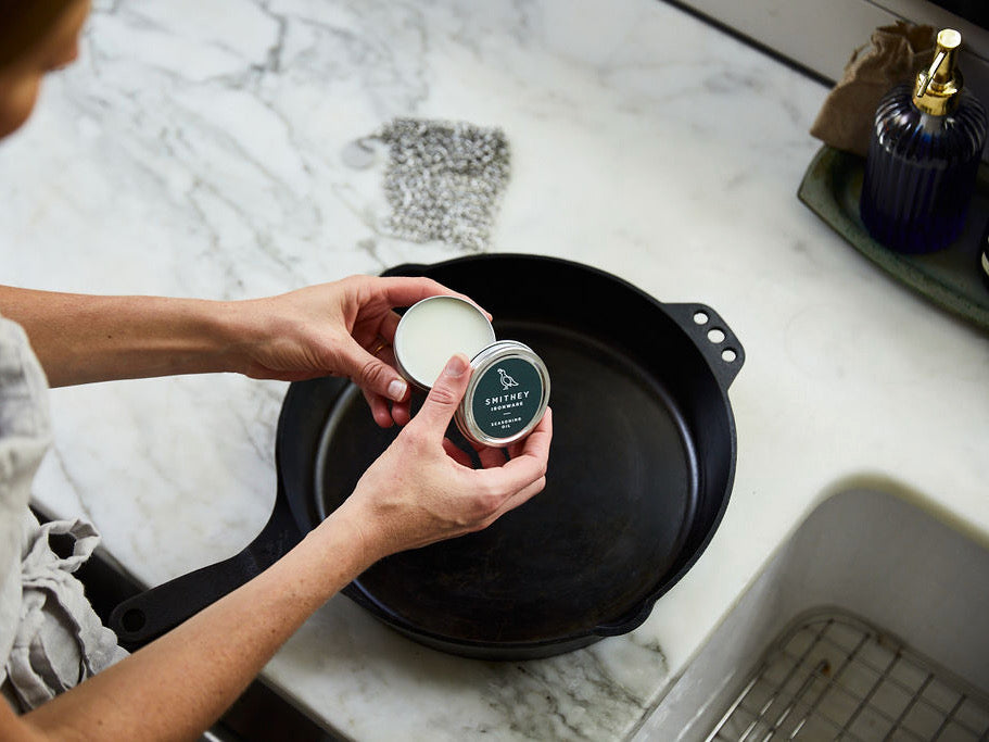 Keep cast iron thoroughly dry between uses and season with a light sheen of oil as needed