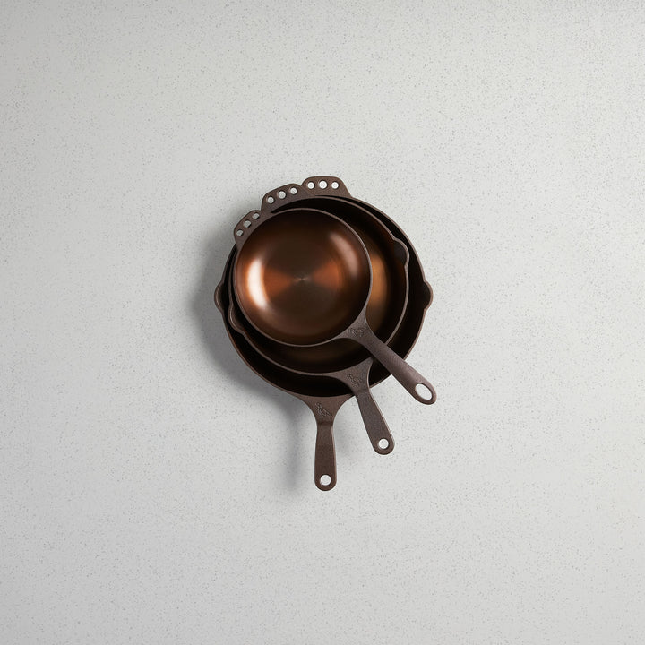 Heat two large Smithey fish skillets over medium high heat. When hot add 1 T oil to each pan and saute the 1/4 garlic scapes (in each pan) for about 1 minute, moving them often.